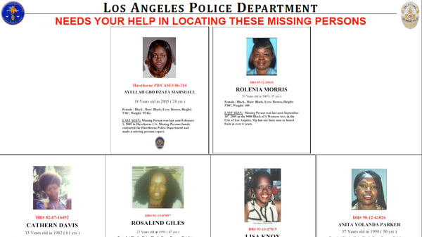 Investigators are releasing the photos of the eight women at a press conference scheduled at 4.p.m. Tuesday at LAPD’s downtown headquarters in hopes that the public will provide them with additional clues as to what happened to them.